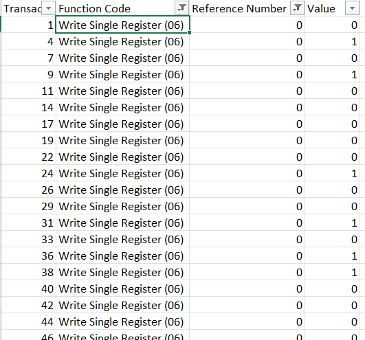 The .2 host only responds by sending back the same information, therefore not useful to have. The following wireshark filter keeps only the interesting communication: modbus && ip.src == 172.31.10.6