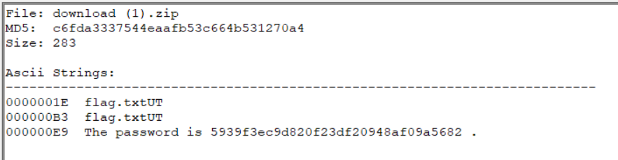 Finally, reconstructing the .zip file and using the given password led us to a file called flag.txt, containing the flag of the challenge.