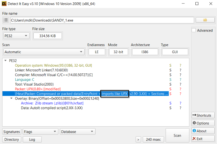 Therefore, the first step to perform the analysis is to unpack it using UPX.